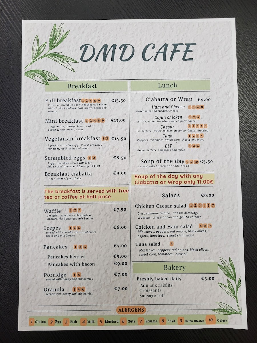 DMD Cafe Menu